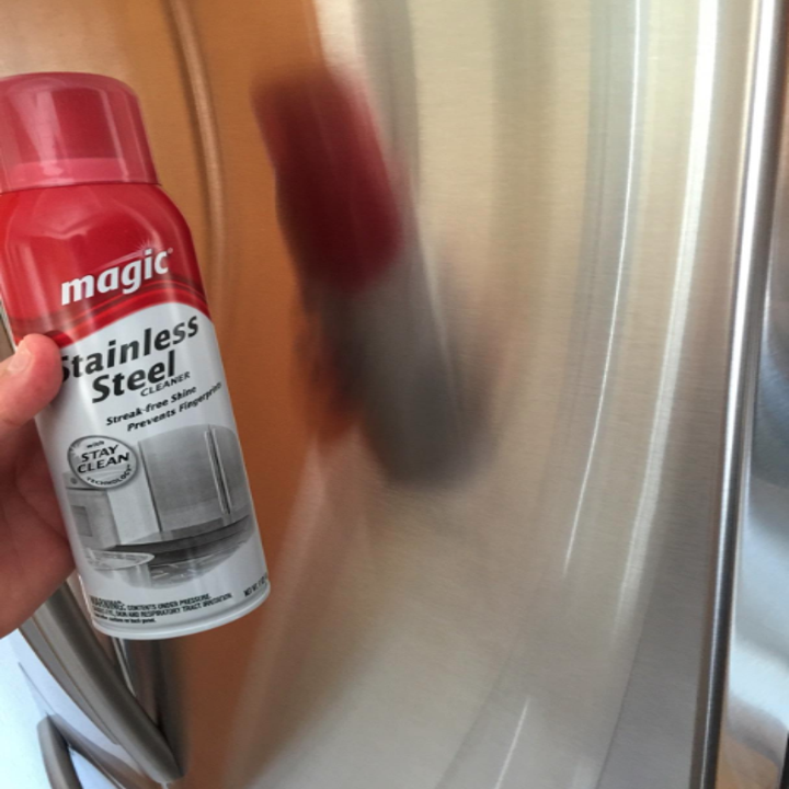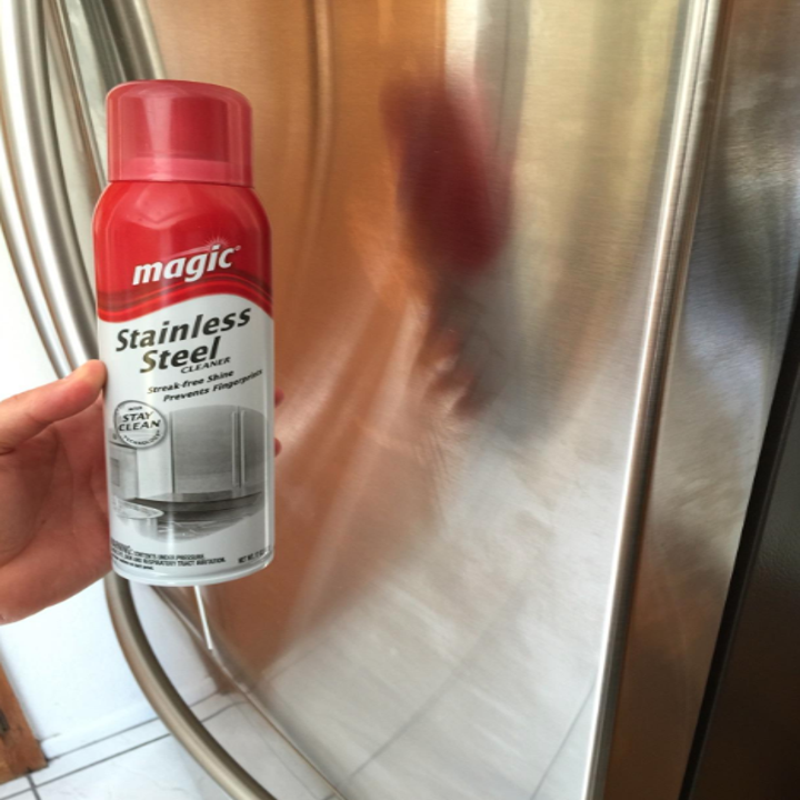 14. Parmak izlerini almak ve buzdolabı kapılarınızdan kir almak için hemen hemen her şeyi denediyseniz, sorunsuz paslanmaz çelik temizleyici ve cila .