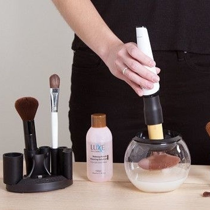 Luxe / youtube.com , Grommet USB üzerinden şarj edersiniz, fırçalarınızı çubuğa birer birer takarsınız, daha sonra cam kasede döndürmek için üç hızdan birini seçersiniz. Temizledikten sonra durulamak için bir dolar deposundan ikinci bir cam kase bile alabilirsiniz. Çeşitli makyaj fırçalarına uyacak sekiz farklı adaptör ile birlikte gelir!